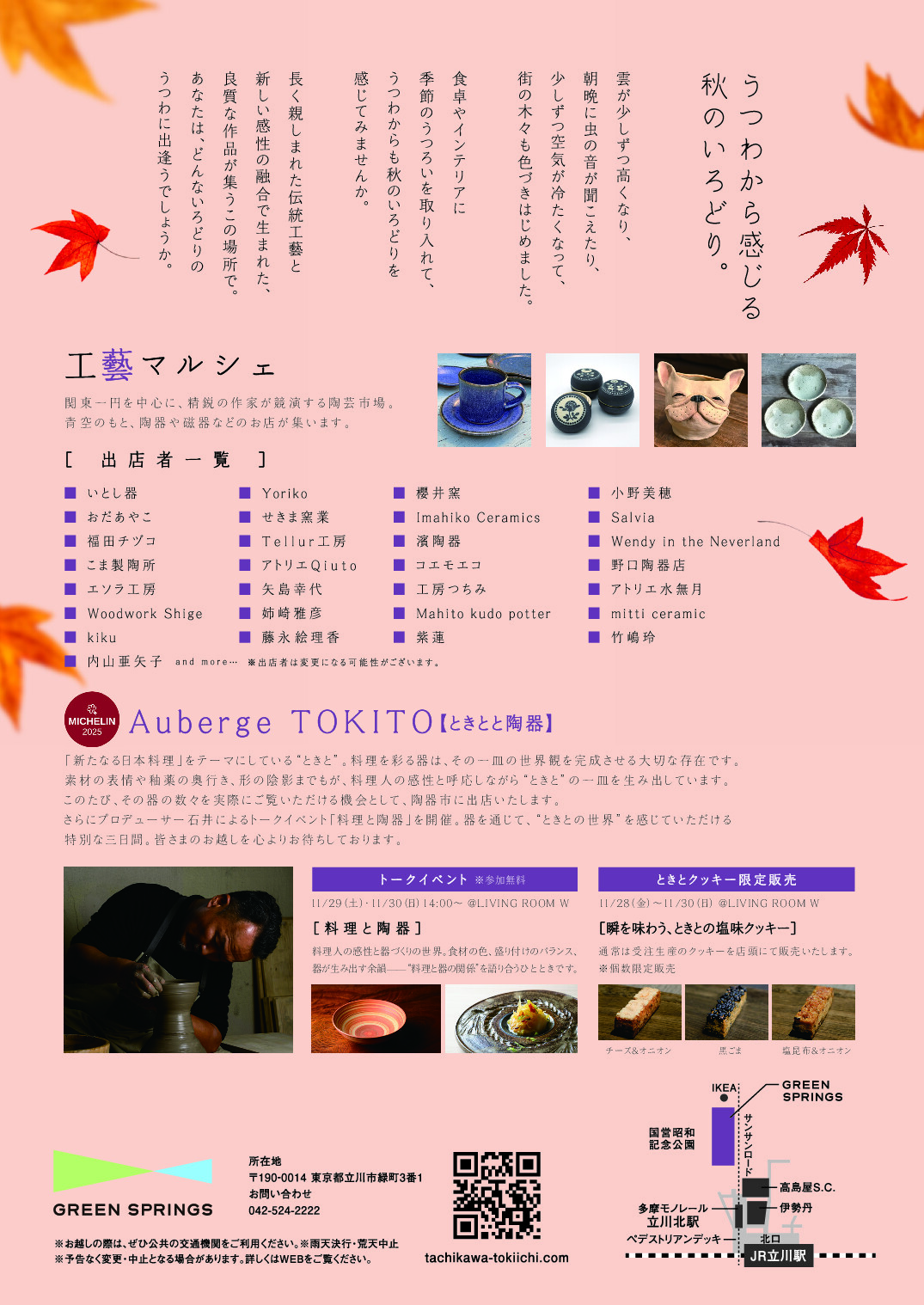 「選りすぐりの窯元が集う空と大地の工藝マルシェ たちかわ陶器市」を11月28日(金)~11月30日 (日)に開催します。
