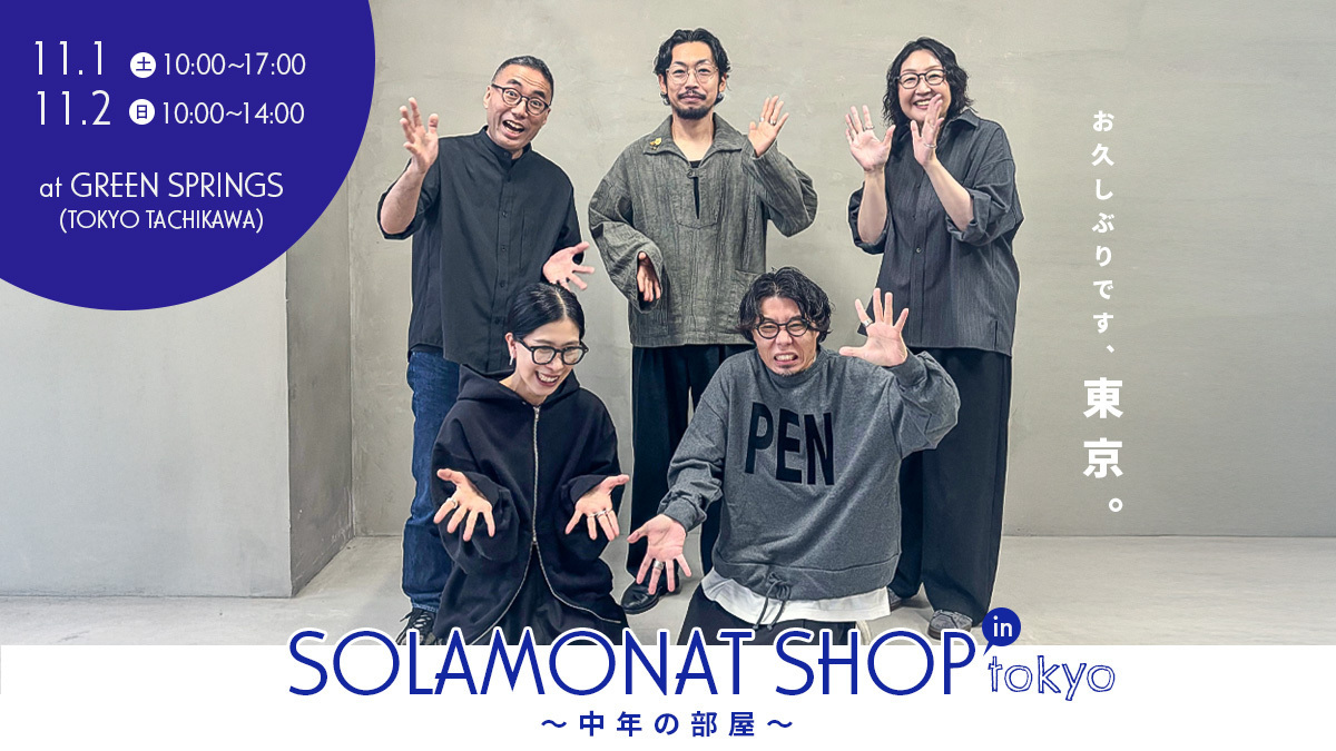 映像の中の“あの2人”を“リアル”に感じられるこの場では、株式会社ウッディーハウスのオリジナルブランドでもあり中年の部屋の出演者でもある中年の女がプロデュースする「SOLAMONAT」を実際に手に取っていただくだけでなく、交流、撮影など、オンライン視聴者と直接つながることを目的に開催します。