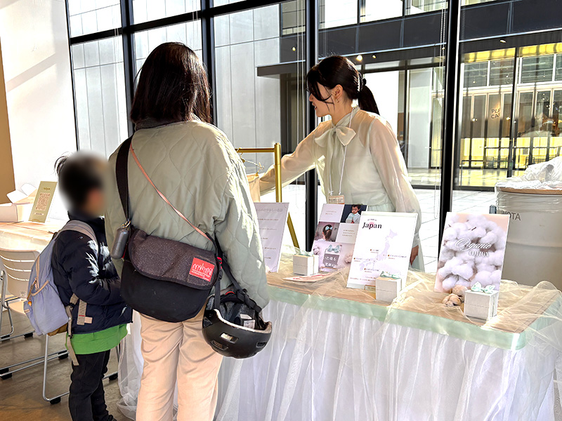 キッズショーツブランド「Plantule」は、子どもの成長の節目に“物語”を添える商品として紹介されました。オーガニックコットンや国内縫製、再活用できるラッピング、障がい者就労支援といった取り組みに対し、「想いに共感した」「贈り物として選びたい」と好意的な反応が寄せられました。育児の時間をより前向きに彩るブランドとして、来場者の心に残る展示となりました。