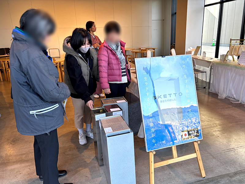 生ゴミのニオイを元から断つことを目指したキッチン用ゴミ箱「SKETTO」は、あえて通気させるという常識を覆す発想が注目を集めました。「消臭剤なしでにおわないのは魅力的」「毎日の家事が楽になりそう」といった声が多く、デザインや使い勝手について具体的な意見交換が行われました。日々重なるストレスを減らす商品として、実用面への期待がうかがえました。